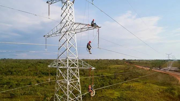 ÏÖ³¡Ö°Ô±ÕýÔÚ×°ÖÃ220ǧ·üµÄµçÁ¦Ïߣ¬£¬£¬£¬£¬£¬£¬¸Õ¹û¹ú¼ÒµçÍø½«¾­ÕâÌõµçÁ¦ÏßÏò¿¨Äª°¢-¿¨¿âÀ­ÏîÄ¿ÔËËÍÇå½à¡¢¿ÉÔÙÉúµÄË®µçÄÜÔ´¡£¡£¡£¡£¡£