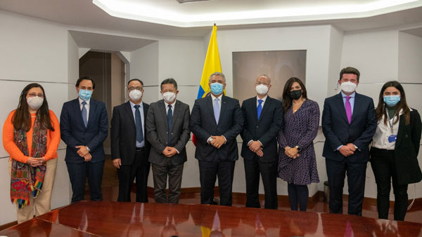 ͼ£ºÖÐÐÄΪ¸çÂ×±ÈÑÇ×ÜͳÒÁÍò¡¤¶Å¿Ë£¬£¬£¬£¬£¬ÓÒËÄΪPAÆì½¢Ìü(ÖйúÇø)¼¯ÍÅ¿óÒµ¸±×ܲÃãÚÏòÑô